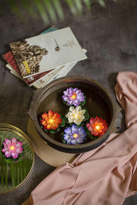 - Package Contain : 6 Pcs Piece Lotus Led Candle, Color : Multi Color