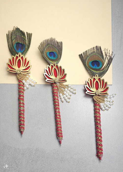 - Elegant Design: These pens are typically adorned with decorative elements like golden lace, morpankh floral patterns, or traditional motifs.