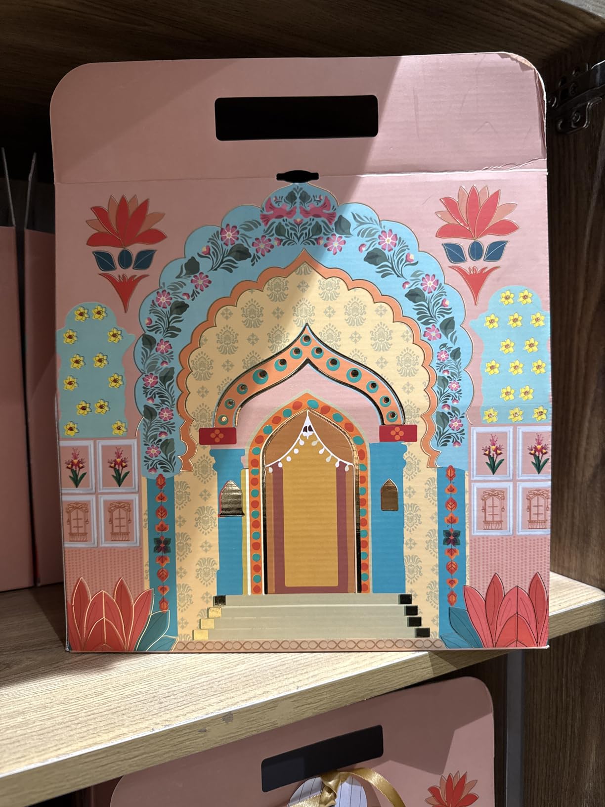 .Make your gifts stand out with our Shahi Dibba Foldable Peacock Hamper Boxes. These 12.5 x 8 x 6 inch premium foldable boxes comes with a ribbon for a royal touch, perfect for festive and special occasions.