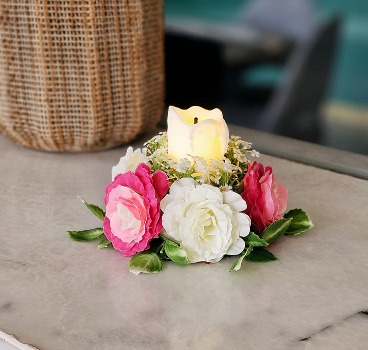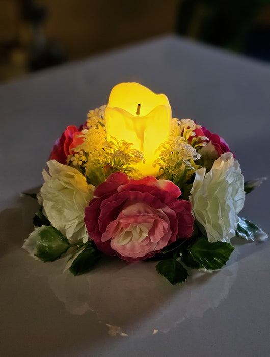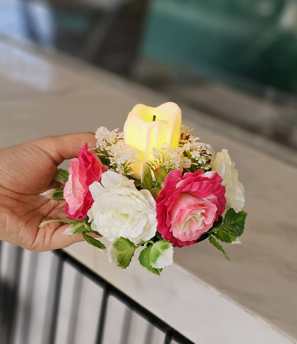 2 Pcs Artificial Flower Center Table Candle Holders with LED candle for Center Table Decor, LED Tealight Candle with Artificial Floral Arrangement, Home Decoration, Housewarming, Wedding, and Festive Decor(5 Inch)