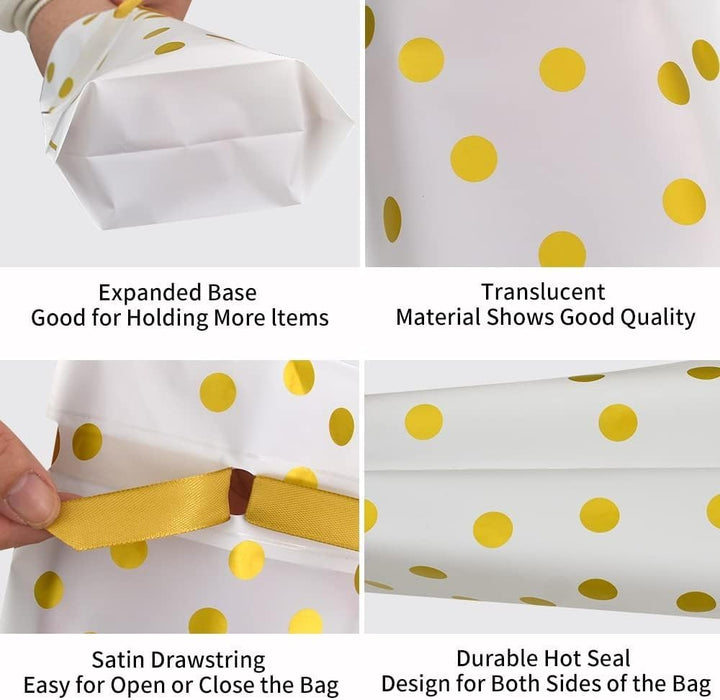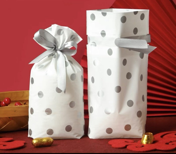 - Package included : 40 Pcs Polka Dot Gift Pouches with Satin Ribbon/ Size : 23.5 cm x 15 cm x 6 cm (H x L x W) / Material : PVC