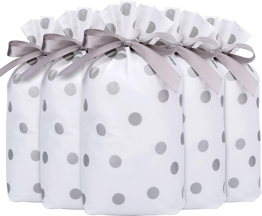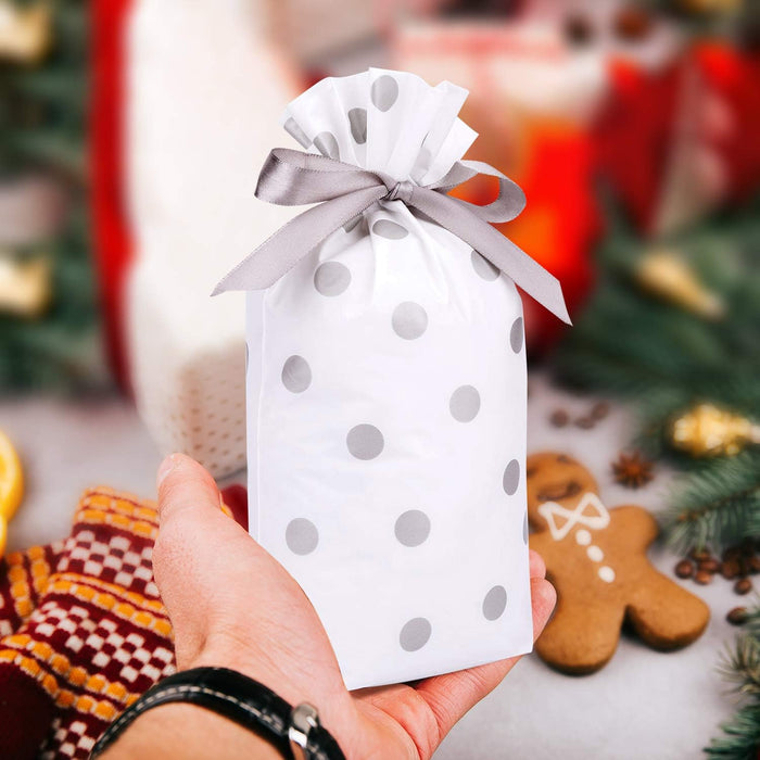 40 Pcs Polka Dot Gift Pouches with Satin Ribbon – White & Silver/Gold Dots