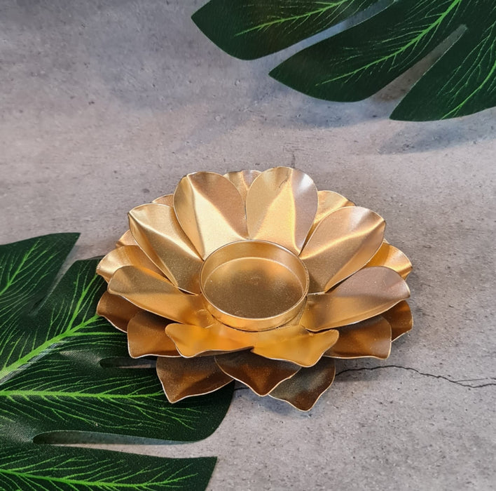 This Small Diya 5 inch adds a touch of sophistication to your Diwali decor. Its exquisite gold color and size of 5” diameter make it the perfect accent piece for your home décor. The lotus-themed design of this single diya holder looks elegant and inviting, making it the ideal accessory to hold a tea light candle. Enhance the beauty of your home this Diwali!